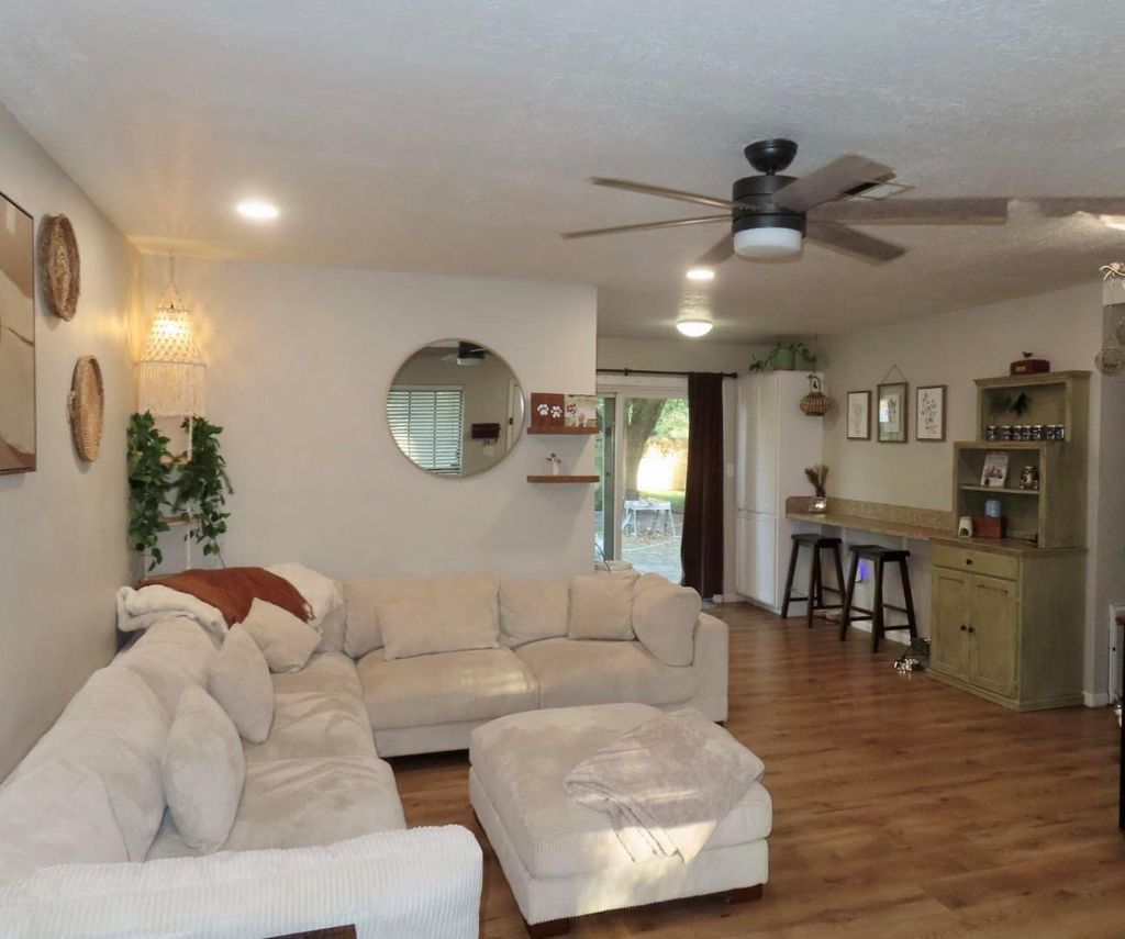 Located in the Hardin-Jefferson school district, this charming 3-bedroom, 1.5-bath home is move-in ready and offers a bright, open-concept layout with spacious living areas. The seamless flow between the living, dining, and kitchen spaces creates a comfortable and functional setting for everyday living. The home features a warm and welcoming interior, great curb appeal, and a backyard shaded by mature trees, perfect for relaxing and unwinding. This is a great opportunity you don't want to miss!