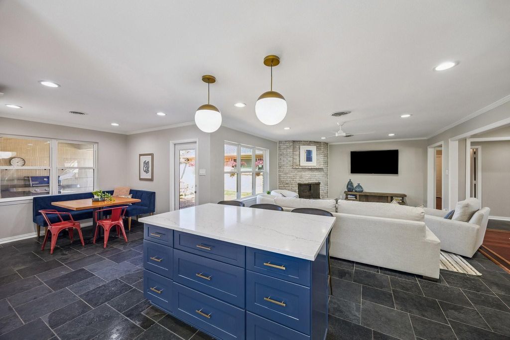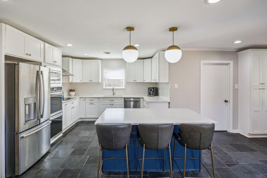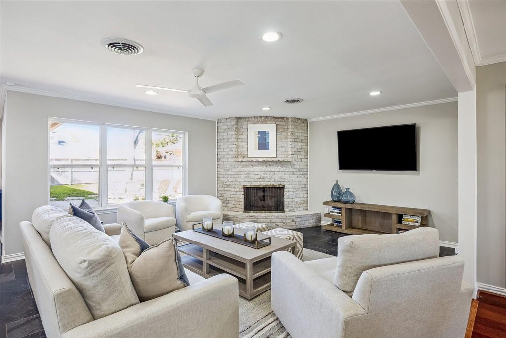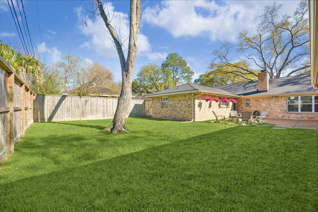Thoughtfully updated, this beautiful well-maintained home sits on a 9,120-sf lot at the corner of a cul-de-sac. The living spaces have been opened to create an easy, modern flow"”truly a "wow." The 2020 kitchen renovation features quartz surfaces, white ceramic backsplash, new cabinetry with gold hardware, a large island with breakfast bar, stainless appliances plus venthood, and mid-century modern globe pendants. Four well-sized bedrooms each offer walk-in closets. Hall closets provide great storage with flexibility to convert one of four to a half bath. Off the dining area, a dedicated study with glass doors offer privacy. The huge grassy backyard includes a patio - as seen through a wall of windows. An oversized garage connects through a covered porch"”perfect for grilling. Convenient to private and public schools, area pool, restaurants and shopping. See Amenities/Updates in MLS attachments. NEVER FLOODED.