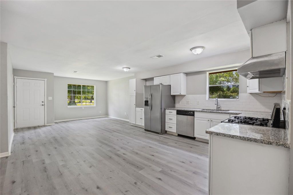 Welcome to this beautifully updated home, offering a rare blend of modern comfort and convenience! Nestled in a peaceful community with no HOA and close proximity to schools, shopping, and vibrant downtown Conroe! Inside, enjoy a spacious open floor plan with no carpet throughout, creating a clean, seamless flow from room to room. The bright living area welcomes you in, while the adjacent dining space connects effortlessly to a refreshed kitchen featuring crisp white cabinets, stainless steel appliances, and ample counter space for meal prep or entertaining. All bedrooms are generously sized, perfect for any lifestyle needs"”from guest rooms to home offices or creative spaces. Step outside to over half an acre of lush green space, ideal for relaxing or entertaining. The covered patio provides the perfect spot to unwind and enjoy the peaceful surroundings. With plenty of room to grow, this move-in ready gem offers the best of comfort and freedom in a sought-after location.