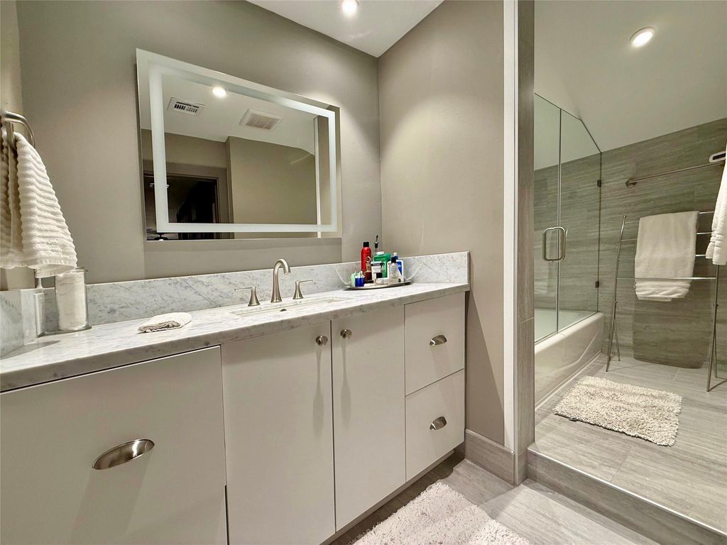 Penthouse-Scale Architectural Drama in the Heart of Montrose. This 2,470sf residence"”largest in this New Orleans-inspired community"”redefines urban luxury thru volume & lighting. Soaring 16ft ceilings & dramatic 2nd-story catwalk overlook a stunning great room wrapped in wrought iron. Graphite walls & extensive recessed dimmable lighting create a sophisticated gallery ambiance. Versatile layout features 3 bedrooms + media room/optional 4th bed, 3 full baths & 1 powder room. Primary sanctuary includes sitting room, large closet. Upstairs study offers a balcony retreat. Renovated kitchen in 2013 boasts stainless appliances + vent hood, pantry, sitting nook, seamless formal dining access. Premium updates: Pella double-pane windows, downstairs HVAC 2025 & upstairs bath renovations 2024. Exceptional storage, generous closets, attic space. Enjoy 2 prime parking spaces, pool, grilling area & tree-lined boulevard views near Houston's finest dining & museums. A crown jewel & exceptional value.