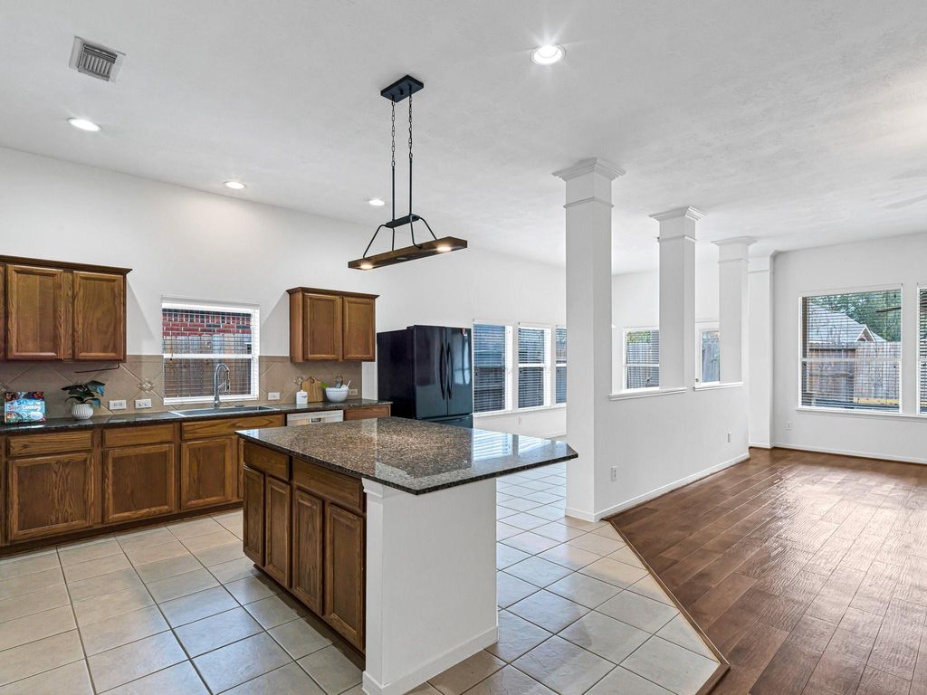 Beautiful single-story home in desirable Berkshire featuring 3 bedrooms, 2 baths, formal dining, dedicated study, and versatile game room. The open island kitchen features abundant cabinetry, stainless steel appliances, and granite countertops, and it overlooks the spacious family room and breakfast area-perfect for gatherings. Gorgeous wood floors throughout the entire home (including bedrooms), with tile in the kitchen. Private master suite includes a garden tub, a separate shower, and a large walk-in closet. Relax in the serene backyard with mature landscaping, a covered patio with ceiling fans, and two freshly renovated wood decks ideal for outdoor enjoyment. Roof replaced in January 2026 for lasting peace of mind.Conveniently located near major roads (Hwy 6, FM 1960/290) for effortless commutes to the Energy Corridor, Katy, or downtown, plus shopping, dining, and essentials minutes away-true suburban convenience! This well-maintained gem won't last-schedule your showing today!