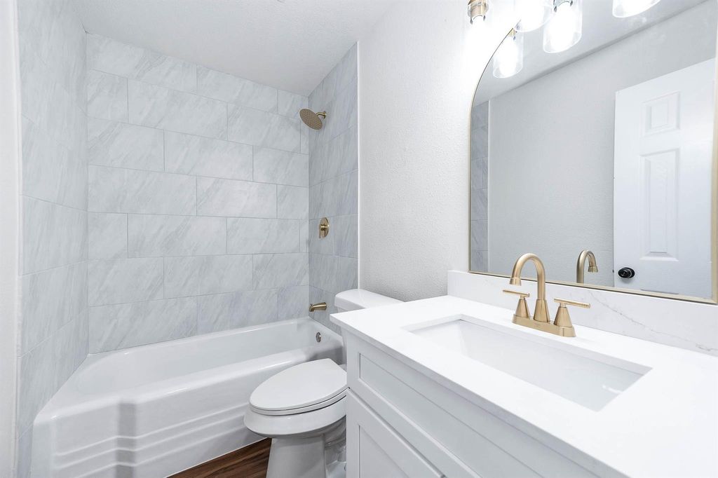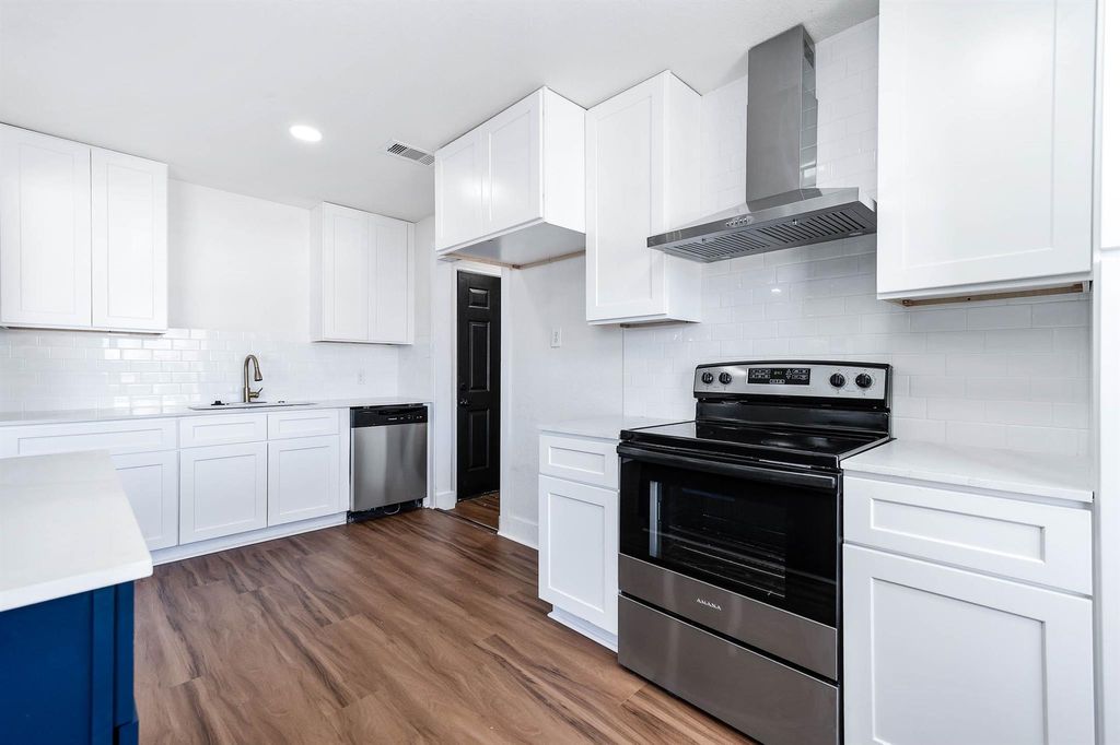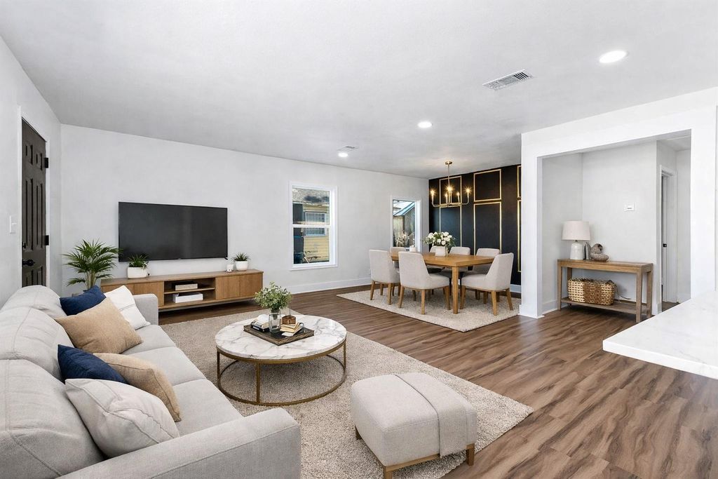 Fully renovated 4-bedroom, 2-bath home with dedicated office in Galena Park! This top-to-bottom remodel features a new roof, new HVAC system, foundation work, updated electrical, new windows, blown-in insulation, and fresh interior and exterior paint. Enjoy an open-concept layout with a reconfigured kitchen showcasing white shaker cabinets, contrasting island, quartz countertops, subway tile backsplash, stainless steel appliances, and recessed lighting. Both bathrooms are completely updated with modern tile, new vanities, fixtures, and glass shower enclosure. New vinyl flooring, interior doors, baseboards, lighting, and hardware throughout. Exterior improvements include siding repairs, fresh paint, refreshed landscaping, and new exterior lighting. Truly move-in ready with major systems replaced. Schedule your showing today! OWNER $F AVAILABLE