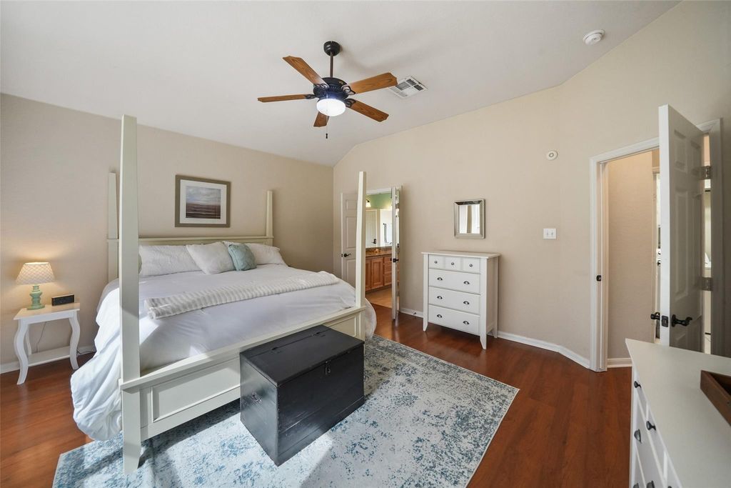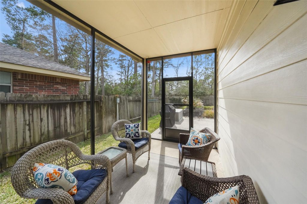 Beautiful Lennar home with great curb appeal in The Woodlands' desirable Alden Bridge, featuring no back neighbors and a private backyard retreat with pool. This 3-bedroom, 2.1-bath home with attached 2-car garage welcomes you with a foyer that flows into a versatile home office, currently used as a dining room. The island kitchen offers Corian countertops, a gas range, and opens to the dining area and spacious family room with fireplace and a wall of large windows overlooking the beautifully landscaped backyard and sparkling pool. The generous primary suite features large windows and an ensuite bath with dual sinks, corner soaking tub, separate frameless shower, and walk-in closet. Upstairs you'll find a spacious game room, two secondary bedrooms, and a full bath. Enjoy outdoor living with a screened-in covered patio, pool with rock waterfall, storage shed, and lush landscaping"”all in a convenient location with easy access to I-45, shopping, dining, and more.