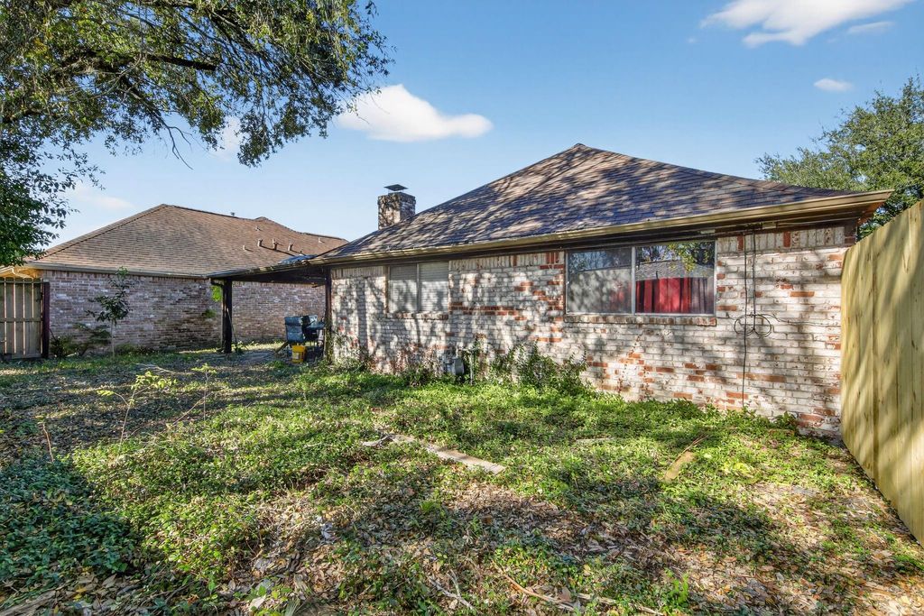 Attractive 3-bedroom, 2-bath, 1,882 sq ft all-brick home in Southwest Houston. Features include a slab foundation, 7-year-old shingle roof, cozy fireplace, and a mix of carpet, hardwood, and LVP flooring. HVAC is approx. 10 years old, water heater about 6 years old. Exterior offers durable brick with some wood trim that could use fresh paint, plus a covered, tiled deck for outdoor living. Backyard has strong potential with cleanup and landscaping. City utilities, no known flood, termite, or lead-based paint issues. Needed work is mainly cosmetic"”paint, landscaping, minor updates. Appliances and furniture not included.
