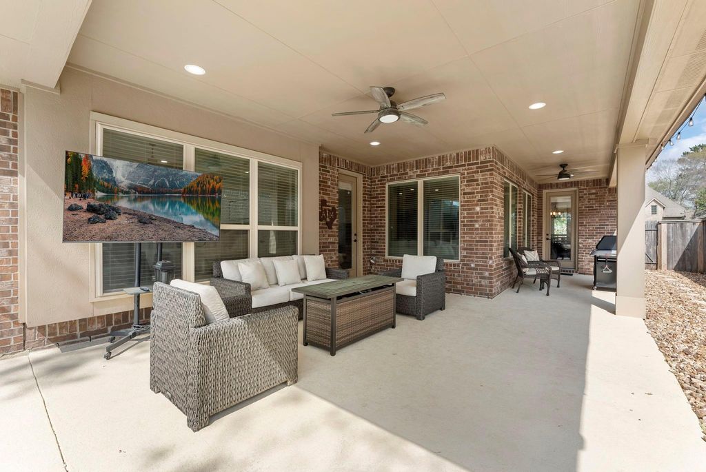 Welcome to the highly sought-after Woodforest master-planned community! This beautifully maintained 3-bedroom, 2.5-bath home offers soaring ceilings, an open-concept layout, and a private home office ideal for remote work. Rich wood floors lead to a spacious kitchen at the heart of the home with ample counter space and seamless flow to the living and dining areas, perfect for entertaining. The generous secondary bedrooms provide comfortable space for family or guests. Major updates include a 2025 roof, fresh interior paint in 2024, and a stunning 2024 sparkling pool and spa creating the ultimate backyard retreat. Enjoy outdoor living from the charming wraparound front porch and covered back patio. Wired for generator. Located near walking and biking trails and minutes from Pine Market shopping, dining, and Woodforest's resort-style pools, parks, and golf. Zoned to highly rated Conroe ISD.