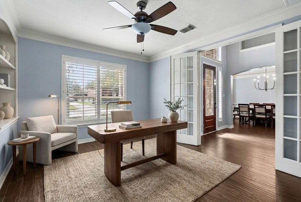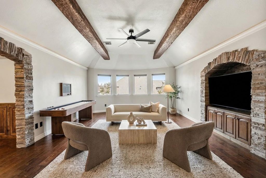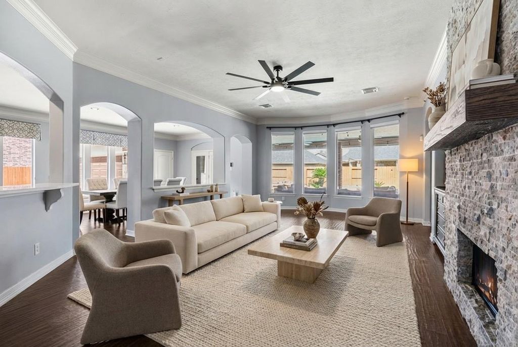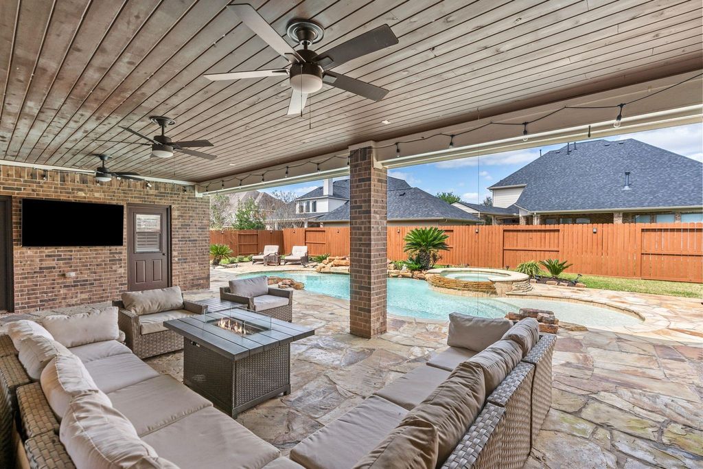 Breathtaking Trendmaker home in the beautiful Waters Lake area, flaunts four spacious bedrooms, each with its own ensuite bath. The recently refreshed gourmet kitchen, thoughtfully designed with upscale details flows right into the breakfast area and living room. A refined dining room provides the perfect backdrop for unforgettable gatherings, while a dedicated executive study creates a peaceful, private environment for work. The luxurious primary suite serves as its own retreat, complete with a warm sitting area and fireplace, plus a spa-inspired bath and an expansive custom-designed closet. Built for entertaining, the home features a flexible media room"”previously a fifth bedroom"”that can easily be restored, along with a game room equipped with a full bar. Outdoors, enjoy your own private escape with a resort-style pool, separate pool bath, and fully equipped outdoor kitchen. Conveniently located just steps from Scanlan Oaks Elementary and Camp Sienna sports complex!