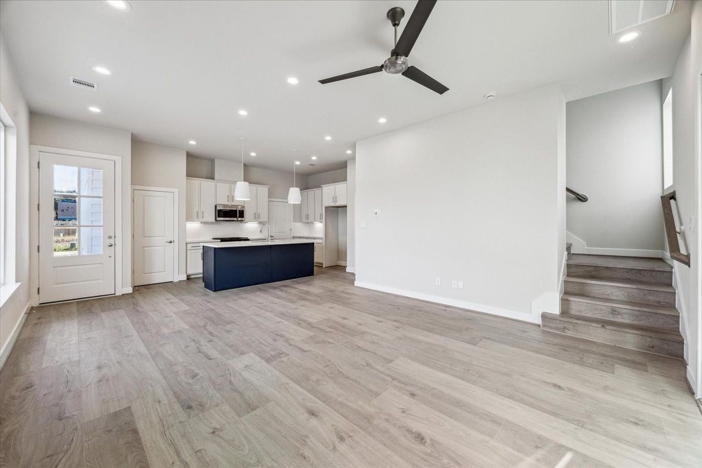 Three-bedroom, 2.5 bath, 1511 sq.ft. home in Willowbend Point. First floor offers two secondary bedrooms, full bath, utility area, storage, and attached two-car garage. Second floor features open-concept living and dining with centrally located kitchen, pantry, powder bath, and private primary suite with walk-in closet and ensuite bath. Efficient layout and ample storage throughout.