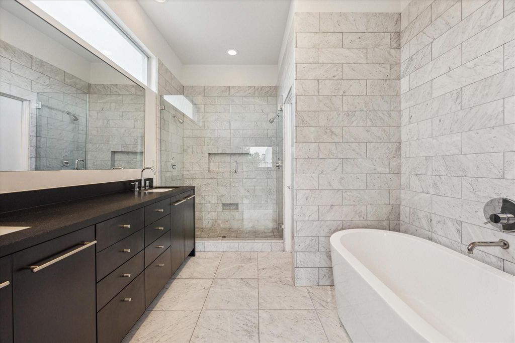 The best views in Houston await you at 1728 Michigan #A, located on a quiet street in the heart of Montrose. Built in 2012 by Farb Homes and designed by revered architects,Strasser/Ragni, #A offers beautiful panoramic city views of Downtown and the Med Center from both the 2nd floor living area,the 3rd floor primary bedrm suite, and the spacious roof top terrace- thanks to it's prime front location. The high-end custom design features 5" hardwood floors, chef's kitchen with Jenn-Air appliances,custom cabinetry, Carrera marble counters,large picture windows opening to a picturesque street, SS appliances,high ceilings,lots of natural light.Eco friendly features include a TPO roof,RAM casement windows,and 2x6 heavily insulated walls.The owners recently replaced the A/C ensuring comfort and efficiency. Enjoy living in the popular Montrose neighborhood with walkability to top Houston restaurants and cafes, galleries,shopping, and Memorial/Allen Parkway with 17 miles of hike/bike trails.