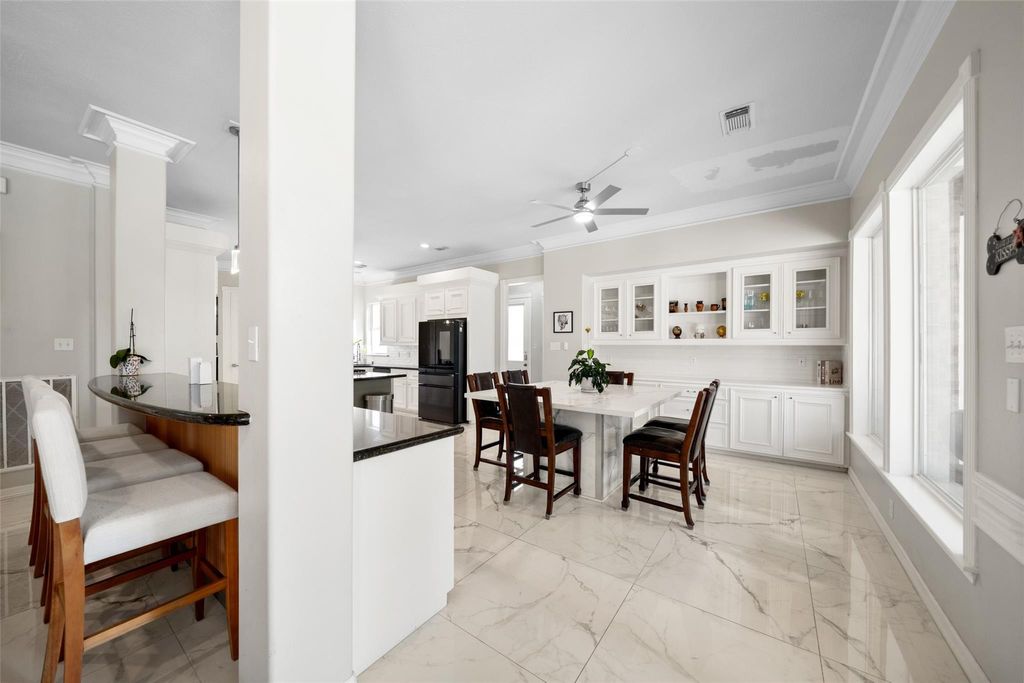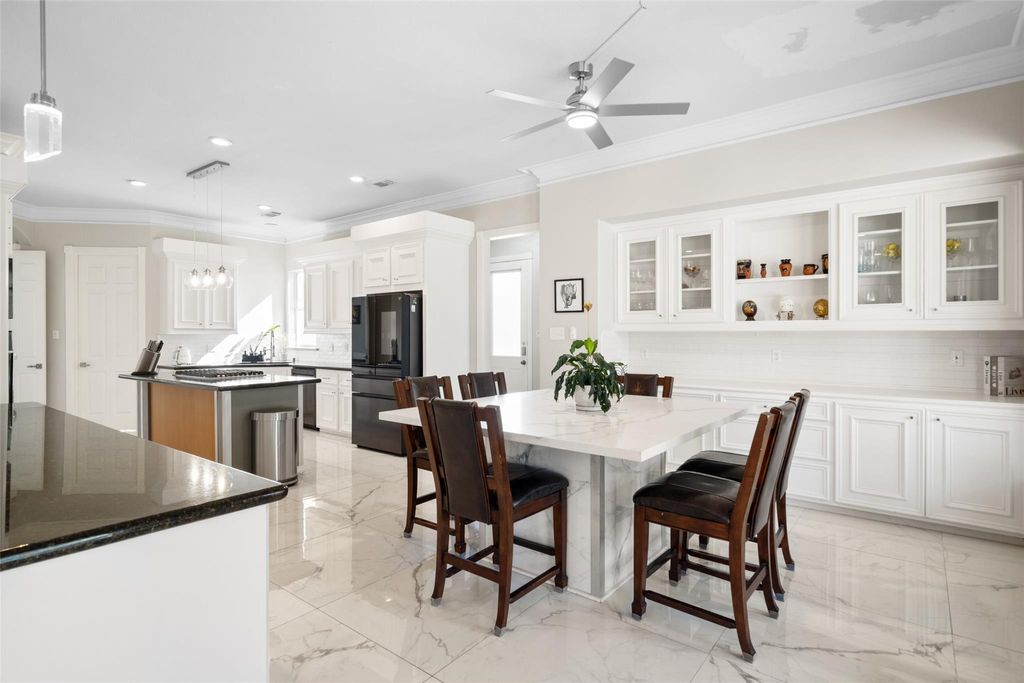 Live comfortably on a breathtaking half-acre corner lot featuring a sparkling pool and lush, manicured landscaping. This expansive, meticulously maintained home welcomes you with a grand two-story foyer adorned with crown molding & elegant detailing. Plantation shutters, double-pane windows, custom built-ins, and a rare dual-staircase design add both sophistication and functionality"”plus, no carpet on the first floor. The kitchen is designed to impress with granite countertops, a gas cooktop, double ovens, stainless steel appliances, and an oversized island that flows seamlessly into the sunlit breakfast area and inviting living room complete with a bar and custom built-ins. Step outside to your private backyard retreat"”covered patio, resort-style pool and spa, & stunning landscaping create the ultimate setting for entertaining or relaxing. Just a short walk to the community lake and minutes from premier dining, shopping, and entertainment. This exceptional property truly has it all.