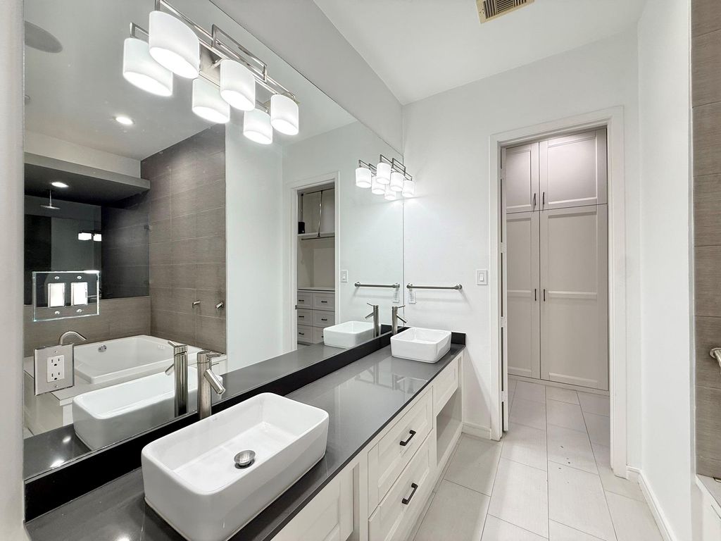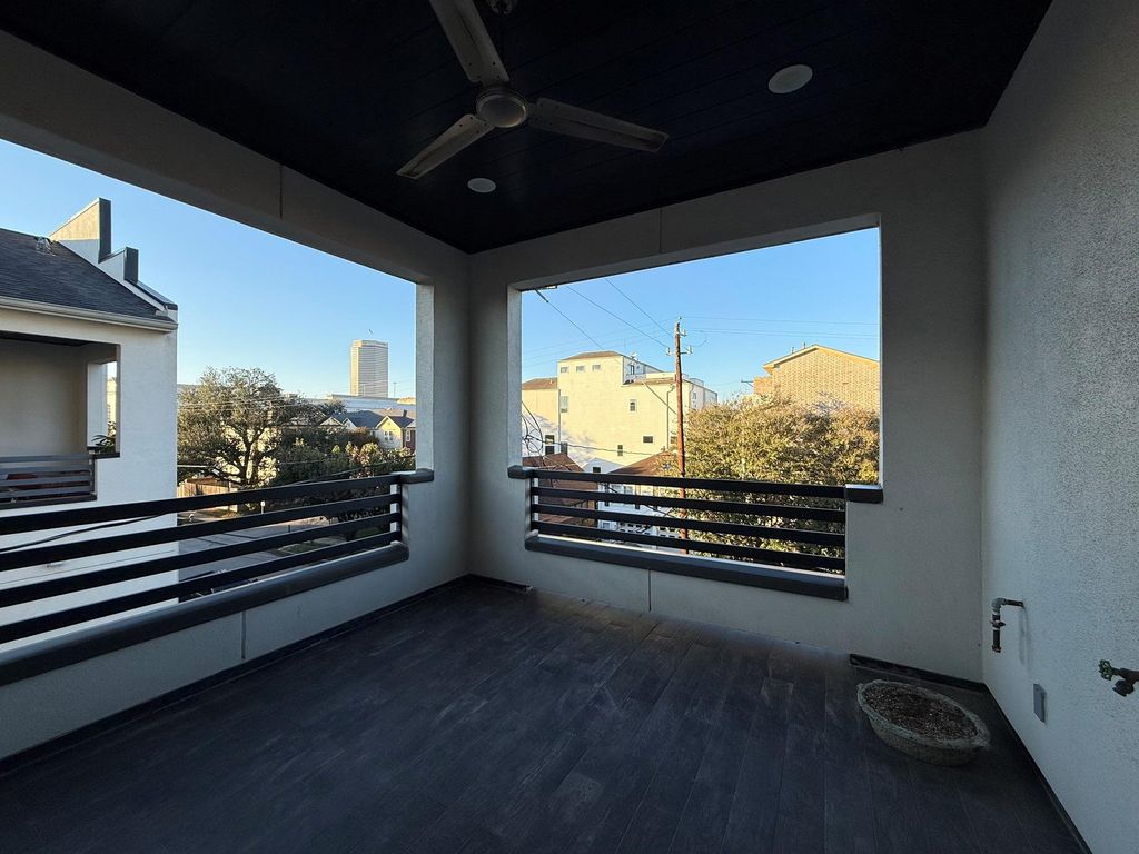 Experience modern living with a spacious yard in the heart of Montrose. This 5-bedroom, 3.5-bath home is within walking distance to top restaurants, bars, and shopping. The first floor features two bedrooms, one with an en-suite bath and direct access to the backyard. The second floor offers an open-concept living space centered around a floor-to-ceiling tiled fireplace, a chef's kitchen with a large island and breakfast seating, a designated dining area, and the 3rd bedroom. Step out onto the second-floor balcony for outdoor entertaining. The primary suite is located on the third floor and includes a stunning en-suite bathroom with double sinks, a large walk-in closet, a glass-enclosed shower, and a separate soaking tub. Another third-floor bedroom also includes a private bath. Enjoy another balcony on the third floor, perfect for relaxing or entertaining. The home also includes a two-car garage with built-in storage.