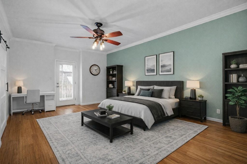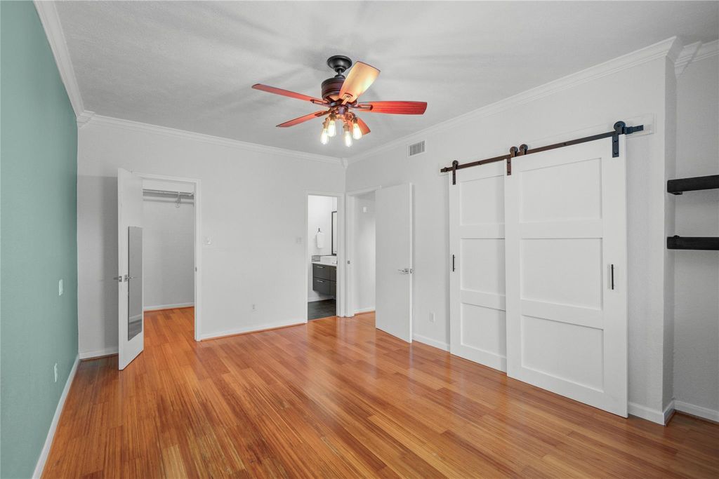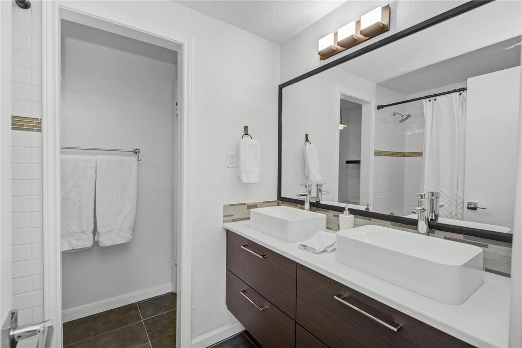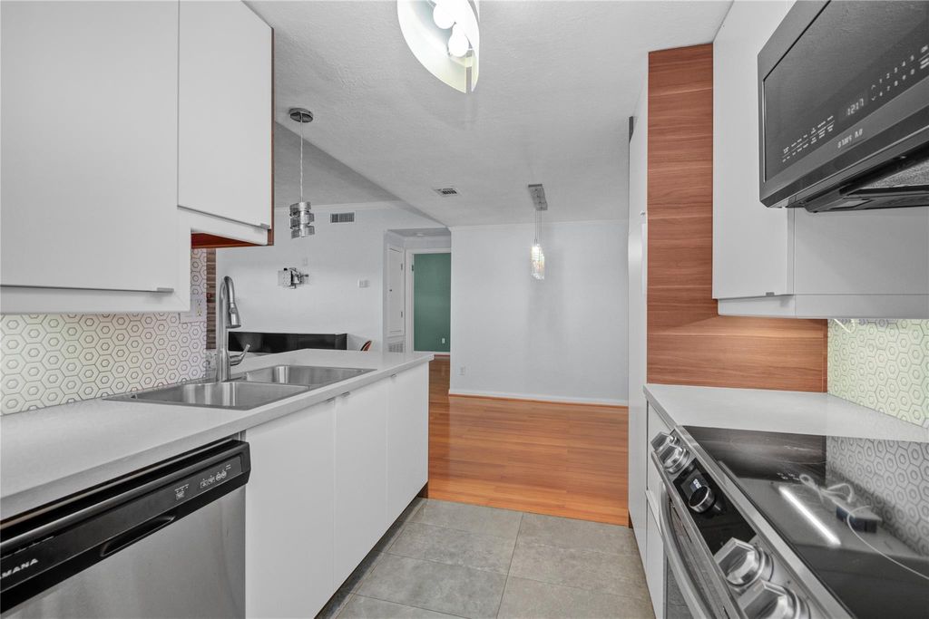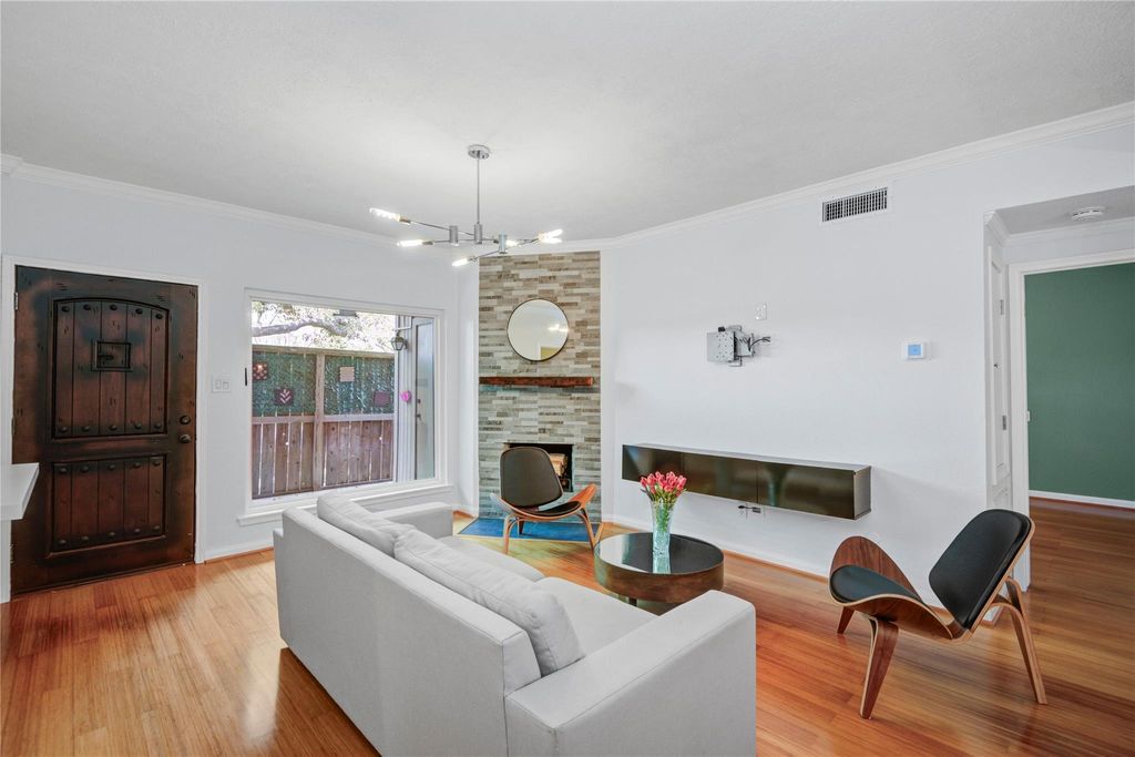 Elegant and inviting, this move-in-ready 2-bedroom, 2-bath condo offers a refined, luxury feel with both bedrooms featuring private ensuite baths. A striking entry opens to a warm, upgraded interior with bamboo flooring, double-pane windows, and a beautifully tiled fireplace. The kitchen impresses with quartz countertops, soft-close cabinetry, under-cabinet lighting, and an induction range, flowing effortlessly into a dining area accented by a custom feature wall. The spacious primary suite includes a walk-in closet plus a second closet with a charming barn door, along with a beautifully updated bath featuring a beautiful vanity with vessel sinks. Both bathrooms showcase modern finishes. Enjoy 2 private patios ideal for relaxing or entertaining. Includes a reserved parking space and an in-unit full-sized stacked washer & dryer. Located in the Sugar Hill gated community, just minutes from shopping, dining, Downtown, and the Museum District. This beautiful condo is just waiting for you!