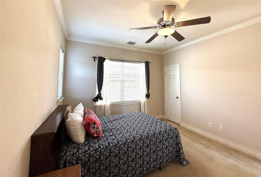 Well-maintained home! This inviting property is located in a convenient neighborhood, close to Hwy 6, Chinatown, and shopping centers. The home features a formal living room and office just off the entry. The main floor has been updated with deluxe tile flooring and offers an open-concept kitchen with upgraded finishes and a premium range hood. The primary suite features a walk-in closet and an en-suite bath with a separate tub and double sinks. Upstairs, you'll find two additional bedrooms and a full bath. The house sits on a corner lot with a well-maintained front yard. Additionally, brand new premium garage door opener was installed recently. There are three extra storage units, a refrigerator, washer, and dryer are all included. This home offers so much more and has great rental potential.