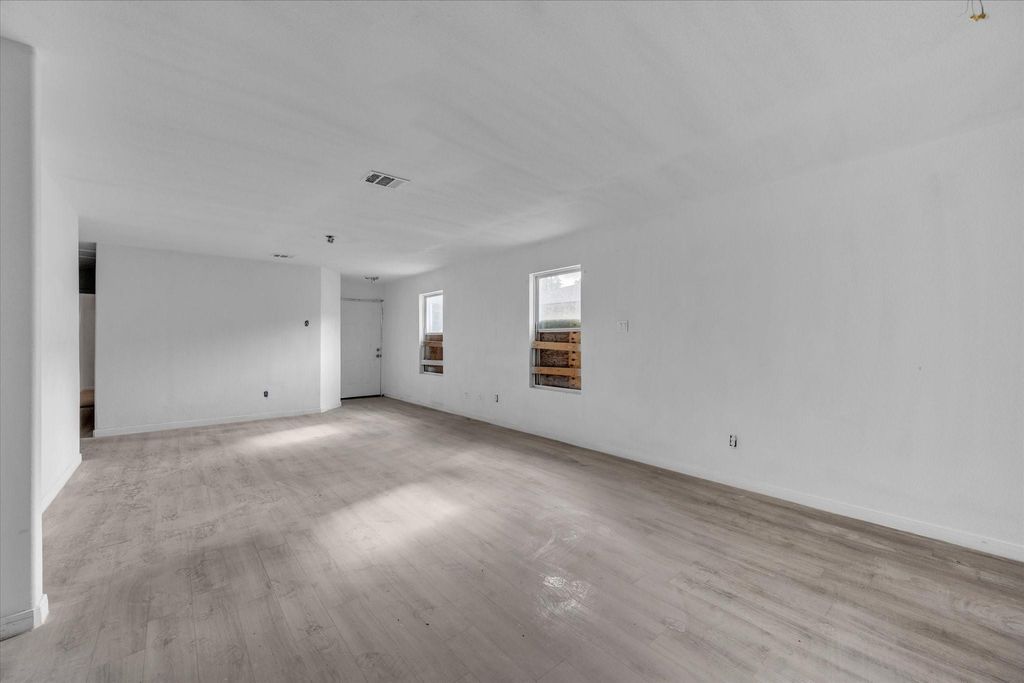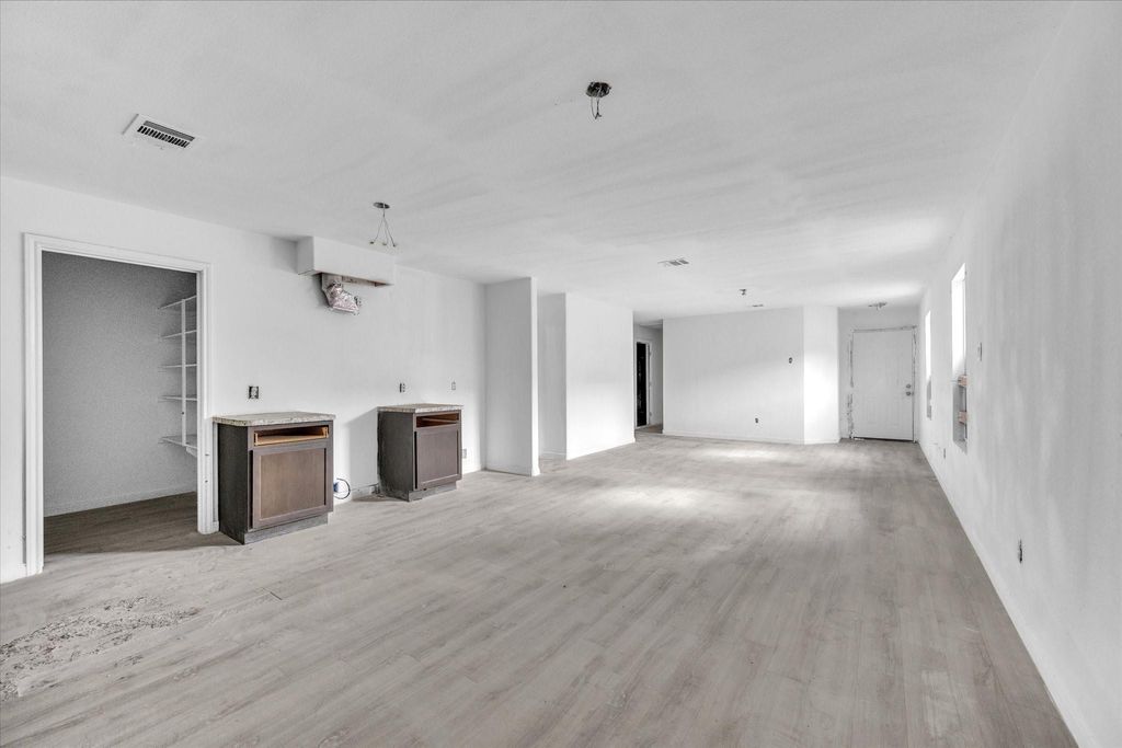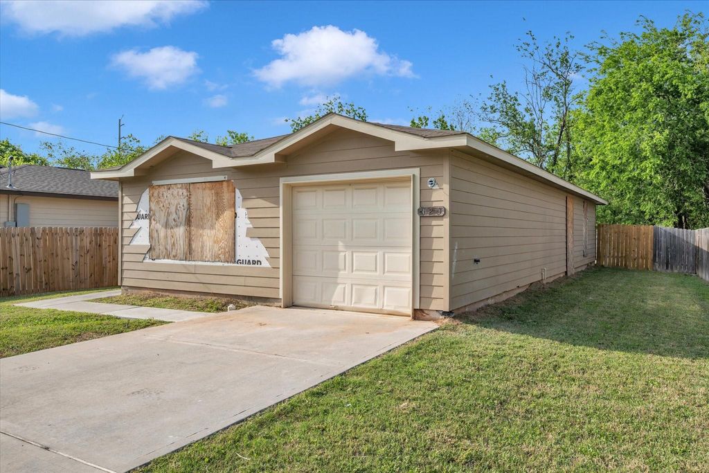 This single-family home offers LVP flooring throughout the main living areas and a spacious open-concept layout connecting the living room and kitchen. The kitchen features granite countertops and dark cabinetry. Bedrooms are carpeted and include walk-in closets with built-in shelving. The home sits on a fenced lot with a car garage, concrete driveway, and covered entry porch. Located in an established neighborhood with newer construction nearby. Property is being sold as-is "” bring your contractor and vision to complete the finish-out.