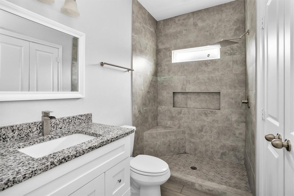 Absolutely gorgeous, like new, 3-bedroom, 2-bath, single-story home sits just off FM 105 in Lake Conroe Village offering quick access to shopping, dining and schools within highly rated Montgomery ISD. The open layout features elevated ceilings and wood-look tile flooring throughout"”no carpet! The kitchen includes granite countertops, a stylish backsplash and a washer, dryer and refrigerator are included making this truly move-in ready. The primary suite offers a private ensuite bath with a floor-to-ceiling tiled shower and a walk-in closet, while both guest bedrooms feature ceiling fans and generous closet space. Outside, a covered back patio is ready for the grill and a fence provides extra privacy. Beautiful home, prime location and virtually move-in ready. Don't miss out on this one!