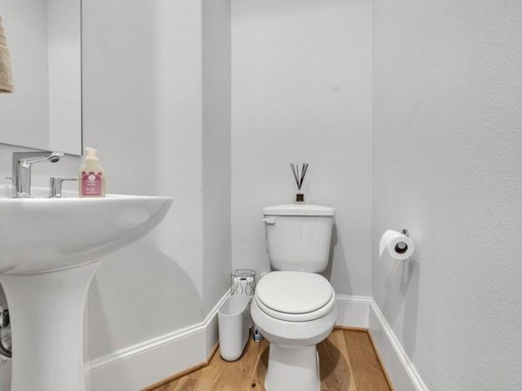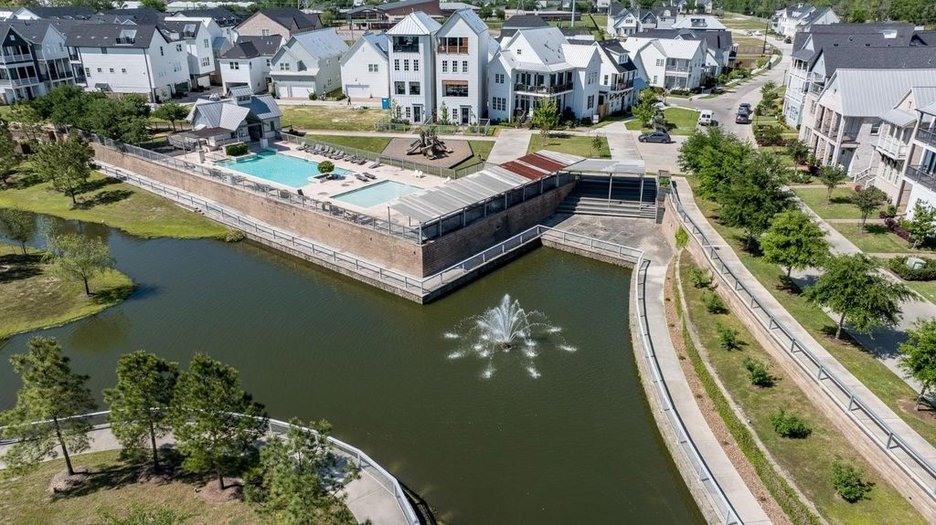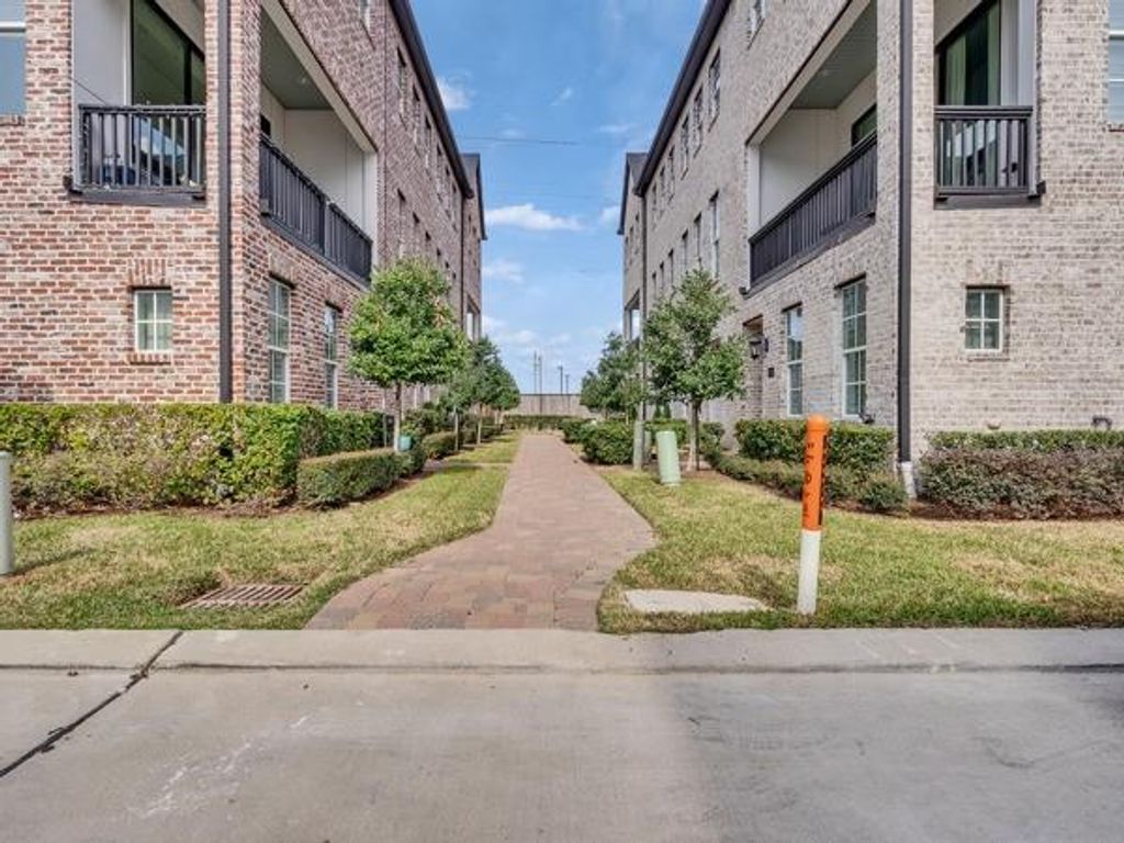 Brick townhome with wide plank wood flooring throughout, no carpet. Located in gated Kolbe Farms in Spring Branch with easy access to Galleria, CityCentre, and the Energy Corridor. Open living area with high ceilings, vaulted primary bedroom, and spacious walk-in shower. Kitchen features Bosch appliances and soft-close cabinetry. Community amenities include pools, trails, lake/park, dog park, playground, and nighttime gated security. Smart home features and tankless water heater included.