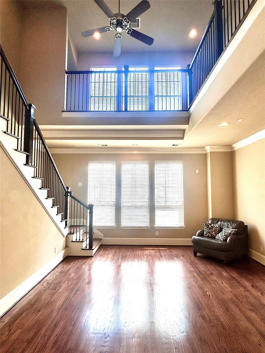 This 3 story townhome in the Heights area offers a spacious layout with a large bedroom on 1st floor w/extra living space, a full bathroom. 2nd floor has an open living room, dining room, well-equipped kitchen, stainless steel appliances, and a balcony off kitchen, with room for your gas grill (not included). French doors lead to a versatile room that can be a bedroom or office, with a full bathroom adjacent. The 3rd floor hosts primary bedroom, a luxurious bath, walk-in closets, and a cozy reading nook. A loft with a wall of shelves, space for exercise equipment, and a built in desk, completes the top floor. High ceilings and large windows throughout, provide lots of natural light. New privacy fence. You're in walking distance to great restaurants, entertainment, coffee shops and markets. All parking in the Heights area, is free. Refrigerator, washer and dryer included; along with water, trash, sewer, alarm, and pest control. Tenant only pays gas and electric. Move in ready!