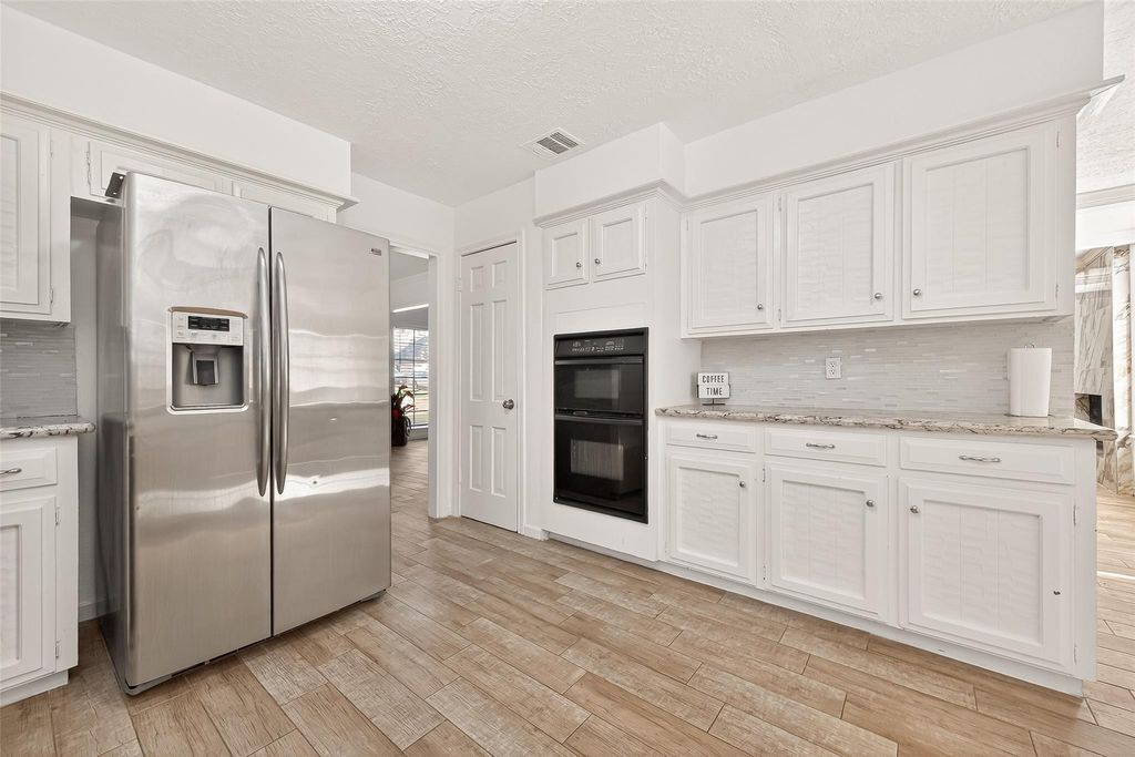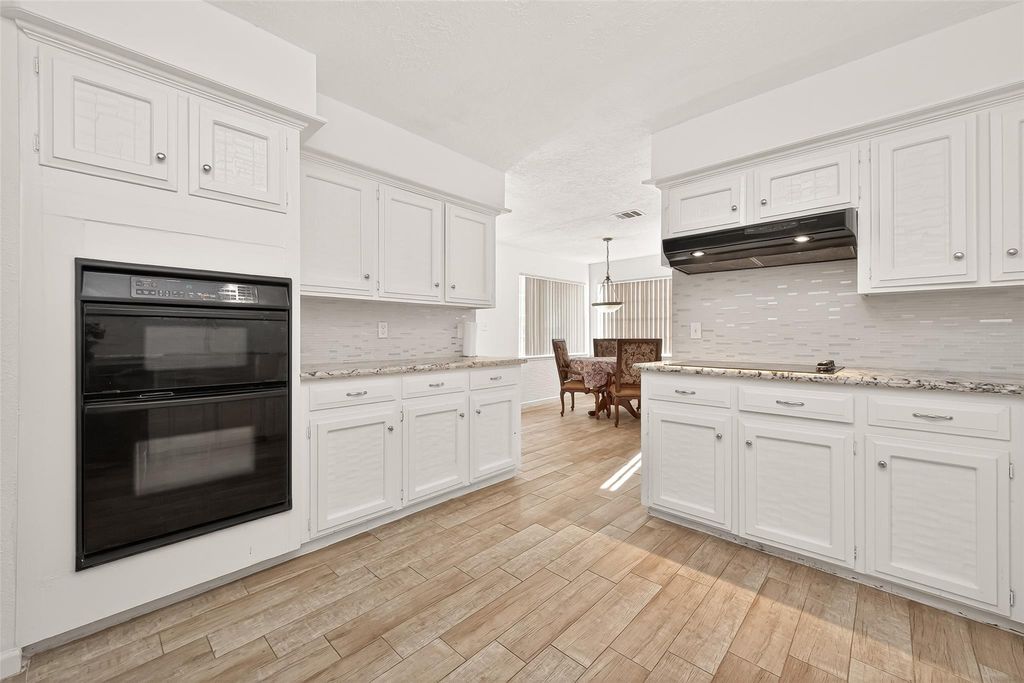 This beautifully maintained home offers comfort, space, and exceptional convenience with easy access to Highway 249, Beltway 8, and I-45. Inside, you'll find wood-look tile flooring throughout the main living areas and a well-designed layout ideal for everyday living and entertaining. The kitchen features granite countertops, a modern backsplash, stainless steel sink, double ovens, and a wet bar perfect for hosting. The spacious primary suite includes a bathroom with dual sinks, custom cabinetry and drawers, and a bathtub/stand-up shower combination. Secondary bedrooms are oversized, providing plenty of room for family, guests, or a home office, while wood flooring upstairs adds warmth and style. Step outside to enjoy a large backyard with endless potential for outdoor entertaining, relaxation, or future customization. This home combines functionality, style, and a prime location, making it a great opportunity for a wide range of buyers.