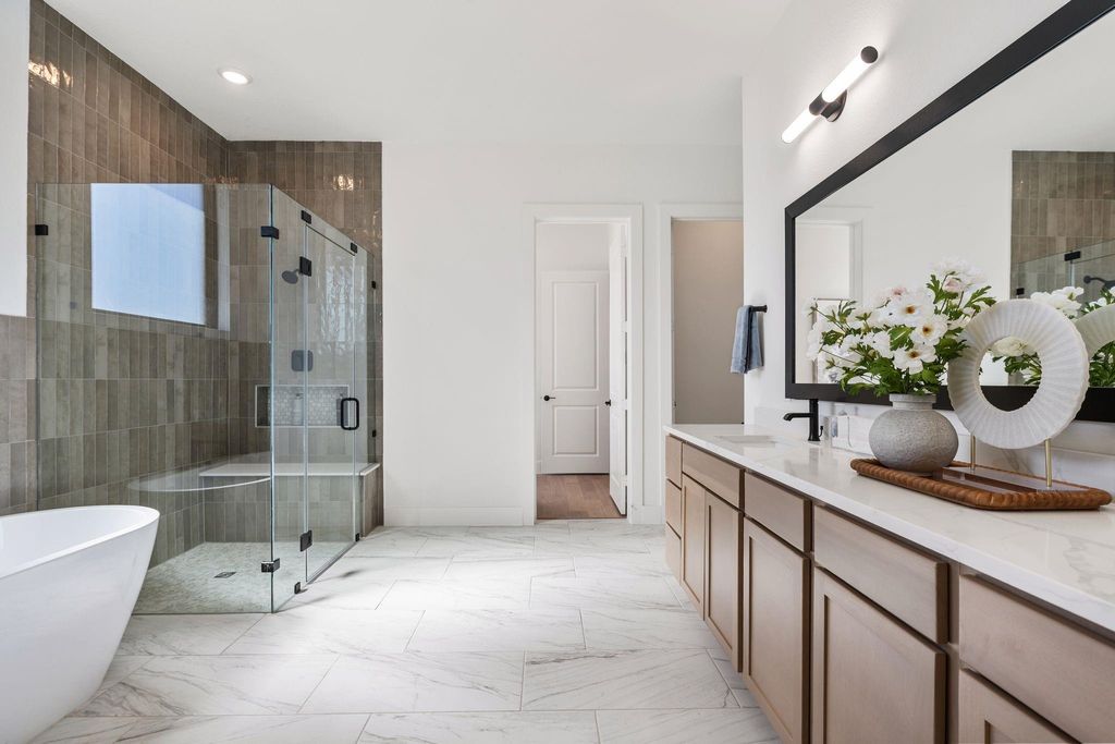 Located within an intimate boutique community, this home offers a grand sense of scale with refined design across 3,885 sq ft of two-story living. The five-bedroom residence welcomes you through a gracious foyer into a light-filled, open-concept family room that flows seamlessly into the dining area and gourmet kitchen"”ideal for everyday living and entertaining. The kitchen features a quartz center island, SS appliances, and a walk-in pantry with ample storage. The privately tucked first-floor primary suite provides a tranquil retreat with a spa-inspired bath, dual vanities, soaking tub, and separate shower. A secondary bedroom on the main level offers flexibility for guests or multigenerational living. Upstairs, a spacious game room and additional bedrooms provide room to relax and unwind. The covered patio extends living outdoors, perfect for Texas evenings. Set within a boutique community, this home blends comfort, style, and versatility for modern living.