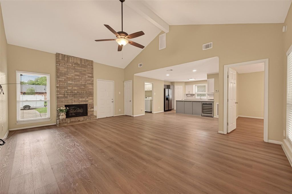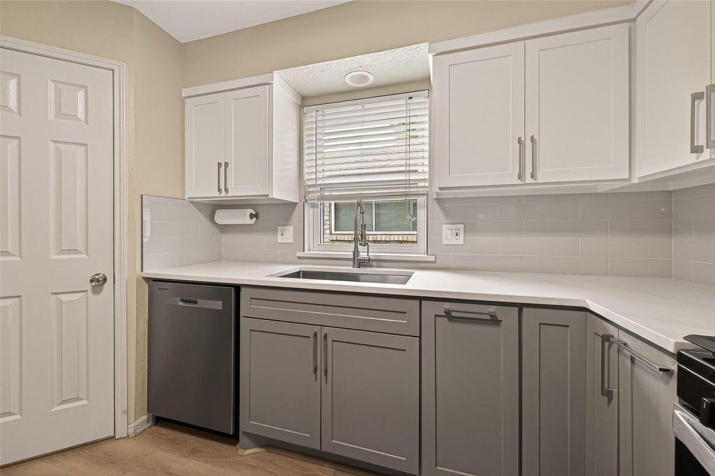 This Move-In ready home has it all! Remodeled kitchen including a wine/beverage fridge, quartz countertops featuring a large bar style countertop, stylish cabinets, gas stove, refrigerator and washer/dryer included! Vaulted ceilings in the family room with new vinyl flooring throughout. Tv mounts already established in the walls for easy set-up, no drilling required. LARGE primary bedroom with your own doors leading out to the cute patio. Storage shed out back for your tools or kids toys. This home will be great to entertain in featuring a double wide AND extra-long driveway. Zoned to excellent schools and grocery/gas/gym/restaurants steps away. Call for your own tour and see this cute house for yourself.