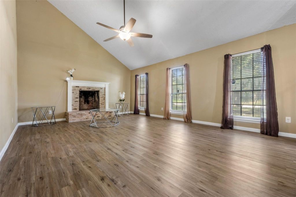 Step into comfort and convenience with this beautifully designed two-story residence that blends functionality with inviting charm. Downstairs, you'll find the spacious principal bedroom offering privacy and ease, along with a dedicated office/study perfect for remote WFH or quiet studying/reading. The open-concept living area features durable and stylish LVP flooring, anchored by a cozy fireplace that sets the tone for relaxed evenings. Upstairs, three generously sized bedrooms provide ample space for family, guests, or hobbies, all carpeted for warmth and comfort. The heart of the home extends outdoors to a covered backyard patio"”an ideal spot to unwind on hot summer nights, entertain friends, or enjoy a peaceful morning coffee. Water softener system for enhanced comfort and appliance longevity; Washer, dryer, and refrigerator all included for move-in ease. This home offers the perfect blend of thoughtful design, modern amenities, and inviting spaces"”ready to welcome you in.