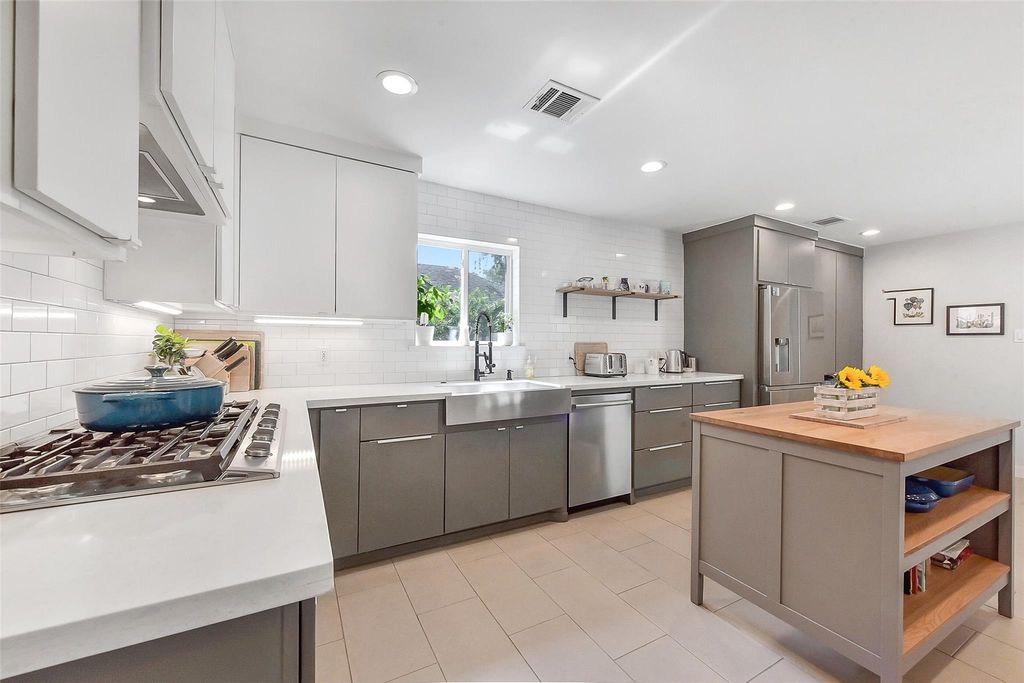 Welcome to 12326 Old Oaks Drive, a thoughtfully updated contemporary home nestled in the heart of Frostwood. This exceptional residence boasts recent renovations throughout the kitchen, primary bath, mudroom, pool, and backyard designed with both comfort and entertaining in mind. The chef's kitchen is an entertainer's dream, featuring custom cabinetry with ample storage, quartz countertops, counter-height seating, and excellent flow into the spacious living areas. Generously sized rooms and an open-concept layout are enhanced by beautiful natural light and seamless transitions, making the home ideal for gatherings of any size. Expansive windows along the back of the home offer picturesque views of the landscaped backyard and sparkling pool. Zoned to highly acclaimed Frostwood Elementary, Memorial Middle, and Memorial High School, this home offers a rare blend of style, function, and location.