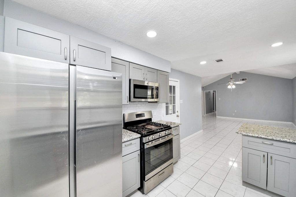 Move-in ready rental! Beautifully updated 3-bedroom, 2-bath home featuring modern upgrades and a spacious, open-concept layout with high ceilings that create a bright and inviting living space. The remodeled kitchen offers contemporary finishes and stainless-steel appliances, perfect for everyday living and entertaining. Patio French doors lead to a private, fenced backyard with a covered patio"”ideal for relaxing or hosting guests.