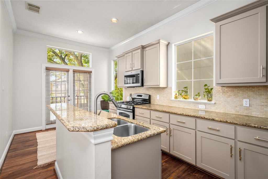 Discover modern comfort in this beautifully updated 3-bed, 3.5-bath home in sought-after Cottage Grove! Corner unit giving you tons of natural lighting throughout. Each bedroom has its own private en-suite, ideal for guests or roommates. The spacious open-concept living area shines with hardwood floors & interior completely newly painted. Recent upgrades include a new A/C (2023), recent stainless microwave and dishwasher, plush carpet, and gorgeous pavers. The first-floor suite offers a private entrance"”perfect for guests or Airbnb income. Enjoy a low-maintenance lifestyle with no HOA fees in one of Houston's most convenient locations"”minutes to Memorial Park, top restaurants, and quick I-10 access. A perfect blend of style, comfort, and opportunity!
