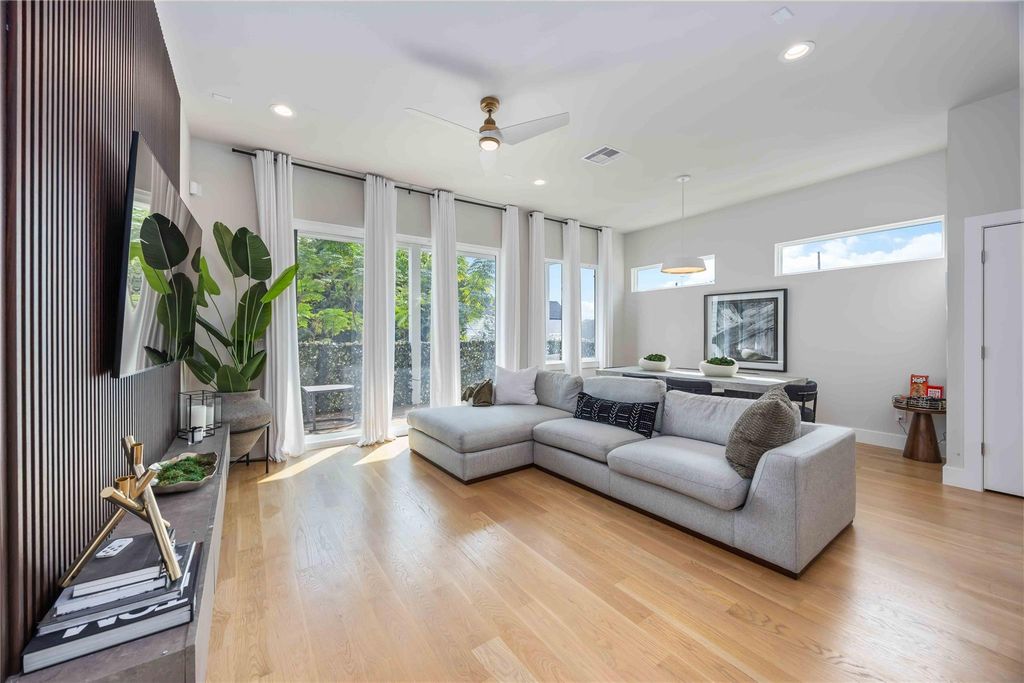 This stunning single-family home offers loft-style living just minutes from the city without compromising space or privacy. The gated property features a private driveway and a spacious two-car garage, providing both security and convenience. Enjoy outdoor living in the large backyard, complete with a covered patio and an expansive balcony overlooking the space, perfect for relaxing or entertaining. Inside, the home is thoughtfully designed with two bedrooms located on the first floor, while the primary suite occupies the second level for added privacy. The upper level is filled with natural light thanks to oversized windows and a sliding glass door that opens to the balcony. The balcony connects seamlessly to the kitchen, creating the ideal setting for grilling while enjoying views of the downtown skyline. Beautifully maintained and truly move-in ready, this home is the perfect retreat for anyone seeking comfort, space, and close proximity to the city.