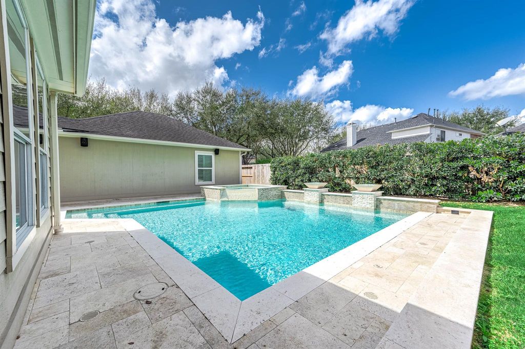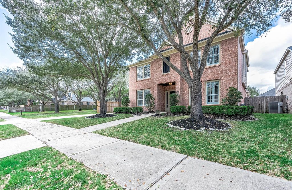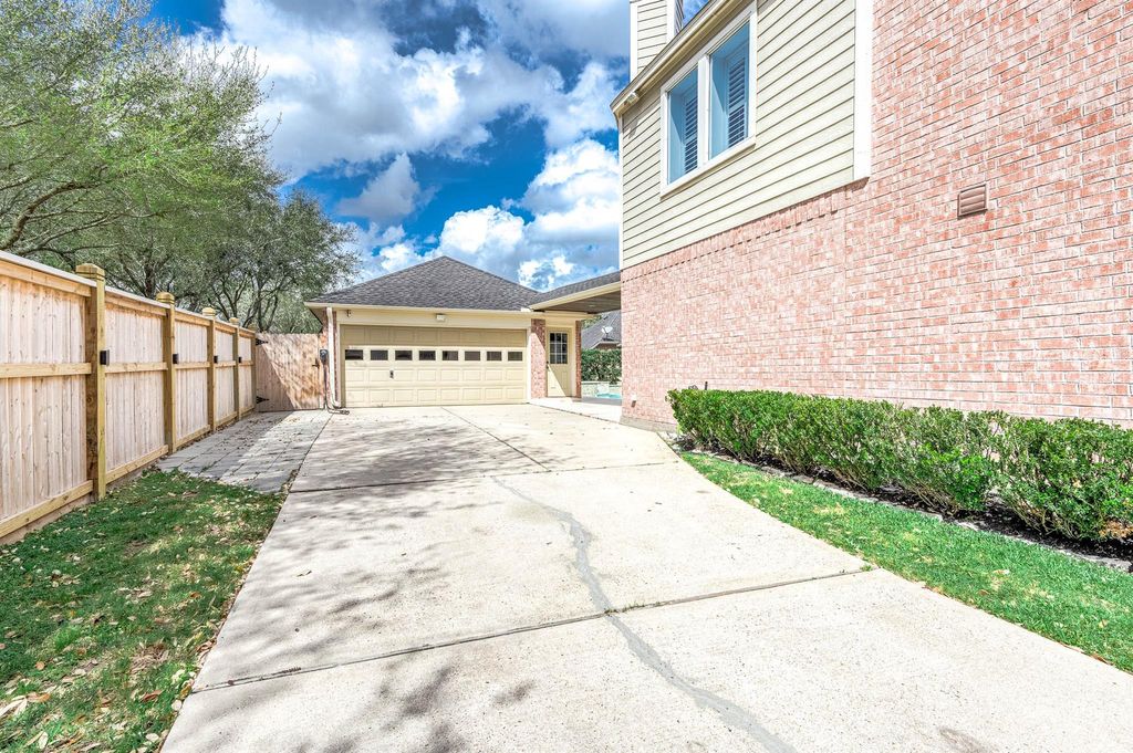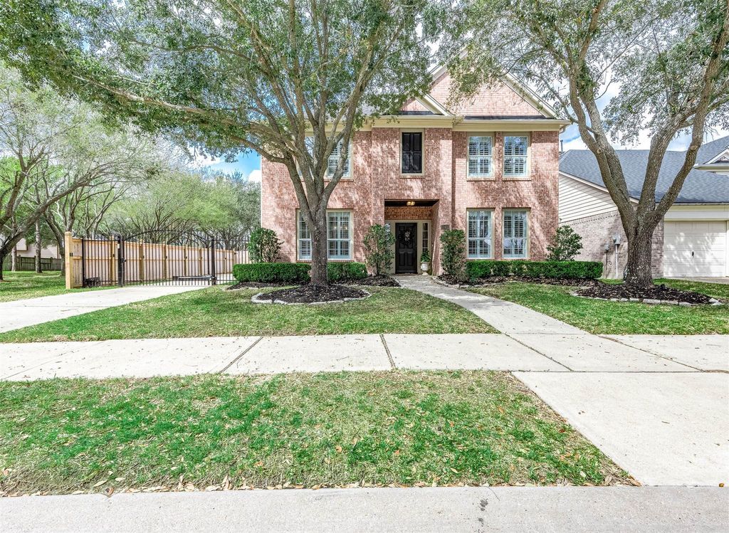 DON'T MISS this beautiful Grand Lakes home with stunning heated pool/spa added in 2016 perfect for relaxing evenings. Gated driveway provides secure space for kids & pets. Detached garage includes man cave plus EV charger for added convenience. Welcoming entry with crown molding opens to formal dining, spacious breakfast area & kitchen that flows seamlessly into family room with soaring ceilings & pool views. Private primary suite is tucked away on 1st floor offering a peaceful retreat. 1st floor includes half bath & utility room. Upstairs features 3 bedrooms, updated bath & large game room ideal for family fun. Outdoor TV & speakers! NEW PAINT & CARPET, this home is move-in ready. Zoned to Katy ISD's top-rated schools, access to amenities including parks, pools, walking trails & tennis courts. Access to Westpark Tollway & Grand Pkwy, just minutes from shopping, dining & conveniences. Beautifully built Perry Home blending quality craftsmanship, timeless design & comfortable living.