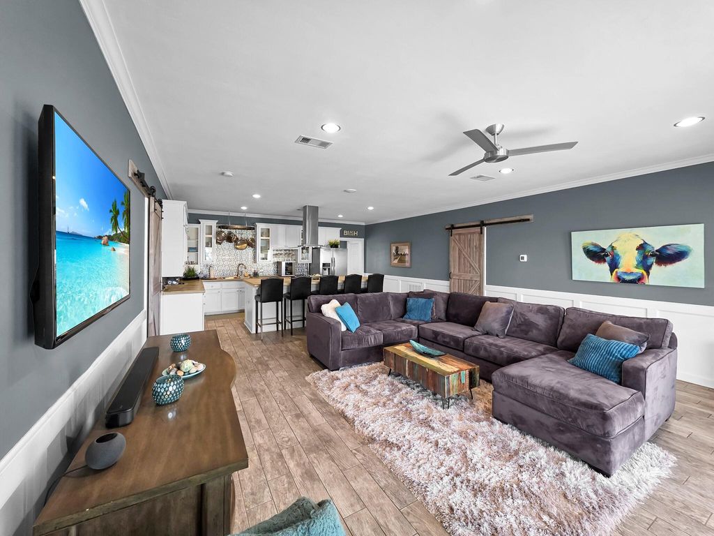 Updated corner beach home in the popular Ramada beachside neighborhood! This 3 bed, 2.5 bath beauty offers Gulf views and is just steps from the sand. The gourmet kitchen features a 5-burner propane range, stainless appliances, and a 10' concrete island perfect for entertaining. Enjoy Gulf breezes from the spacious deck or gather below for outdoor fun. After fun in the sun on the beach, just steps away, rinse off in the outdoor shower and relax while watching turtles, otters, birds and cranes in the canal. The primary suite includes a private office area, walk-in closet, and spa-like bath with separate tub and shower. Two staircases and dual upstairs entrances provide easy access. Fenced yard section, abundant additional covered storage in garage and bonus interior storage room. Fully furnished. Must see to appreciate! Excellent vacation rental, family getaway, or full-time residence. Call to schedule a showing today!