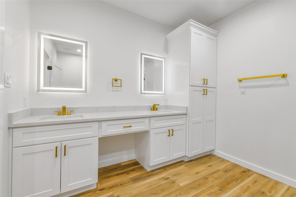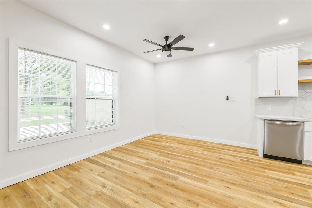 Newly remodeled duplex featuring 3 bedrooms and 2 baths per unit - Unit 1 offers approximately 1,376 sq. ft. and Unit 2 offers 1,365 sq. ft. Each unit features spacious open-concept layout with recessed lighting, plank flooring, and large glass windows. The modern kitchen features granite countertops, backsplash, and updated fixtures. Each of the three bedrooms includes its own walk-in closet. The primary suite offers an en-suite bath with dual sinks and vanity, an enclosed tiled shower area, and elegant fixtures and hardware. Each unit also has its own laundry area and access to a fully fenced backyard. This is a great opportunity for owner-occupants or investors seeking rental income. Schedule your showing now!