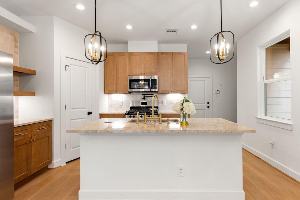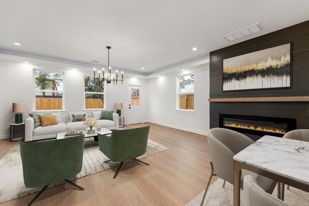 Welcome home to 882 Prosper Street, a modern two-story home offering open-concept living enhanced by elegant, timeless design elements throughout. The home features inviting living spaces anchored by fireplaces on both the main level and upstairs, creating warmth and architectural interest. A thoughtfully designed kitchen showcases a large island, warm wood cabinetry, stainless appliances, and seamless flow for entertaining. A unique, dedicated wine room adds a distinctive touch, perfect for showcasing and storing a curated collection. The primary suite serves as a private retreat, complete with a private balcony, walk-in closet, and a spa-inspired bath with double sinks, freestanding soaking tub, and a frameless shower. Additional bedrooms offer flexibility for guests, home office, or everyday living. Outside, enjoy a fully fenced backyard, private driveway, and attached two-car garage. Ideally located with convenient access to major roadways, shopping, dining, and Downtown Houston.