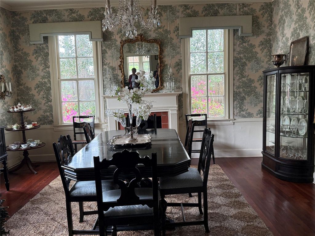 Historic home located on the south side of Woodville's courthouse square. The original home was built in 1848 with two rooms downstairs and two upstairs. During the 1920's the house was enlarged and refined into the storied residence that stands today. A master bedroom wing was added on the first floor in 1960. Filled with natural light, this house blends historic charm with spacious living and it is brimming with timeless character. The rooms are large and inviting with high ceilings, pine flooring and excellent craftmanship. The home has five bedrooms, 3 1/2 baths, five fireplaces, a large living room, dining room and sun porch on approximately .7 acres. It is well maintained, thoughtfully decorated and retains many of the original features. The white picket fenced yard is adorned with azaleas, magnolias, and other landscape plants with a gazebo and small building situated in the back yard. Parking is available in the front and back of the home.
